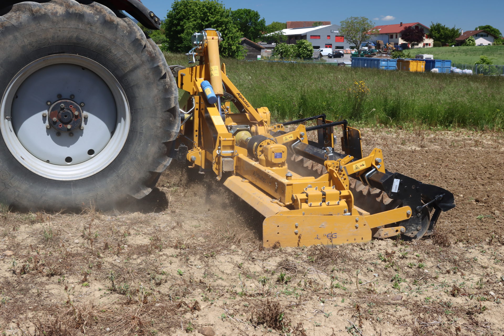 Herse rotative repliable conçue en acier haute résistance, la ROTODENT DP est disponible en 4m, 5m et 6m.