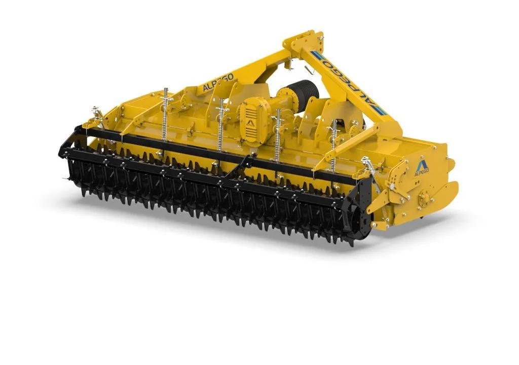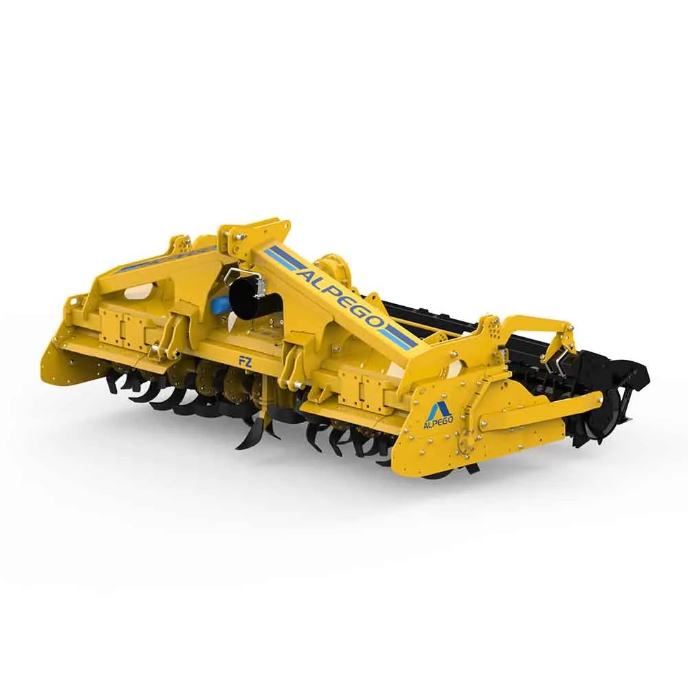 Die festen Kreiseleggen FG und FZ bilden das Herzstück des schweren Alpego-Programms für intensive Bodenbearbeitung und das Einarbeiten von Ernterückständen. Die Baureihe FG (90–170 PS) ist ideal bis 3 m Arbeitsbreite, die Baureihe FZ (140–280 PS) geht bis 4 m und ist für die stärksten Traktoren ausgelegt. Beide Baureihen verfügen über den berühmten, vollständig bei Alpego entwickelten und gefertigten patentierten Zentralantrieb-Antrieb: Die Leistung wird vom Zentrum der Maschine über eine Kaskade von ölbadgeschmierten Stirnrädern auf die beiden halben Rotoren übertragen – mit optimaler Wärmeableitung durch ständigen Bodenkontakt. Der exklusive 6-Messer-Rotor mit doppeltem Gegenflansch sorgt für außergewöhnliche Zerkleinerungsqualität selbst unter härtesten Bedingungen.