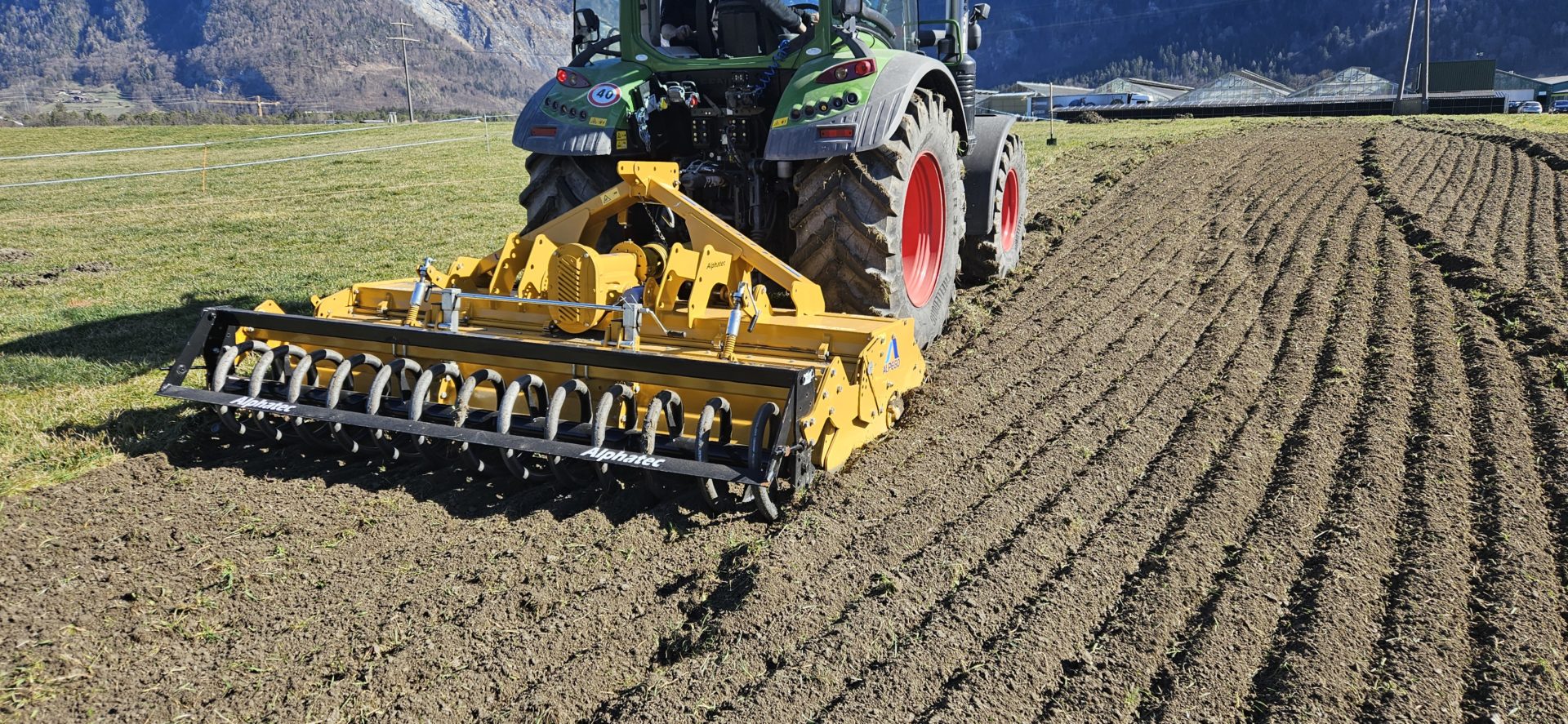 Die Steinumkehrer IG und IZ von Alpego sind die einzige echte Lösung auf dem Markt, um Steine, Kluten und Pflanzenreste effizient zu versenken und gleichzeitig eine perfekt feine, sämereife Oberfläche zu erzeugen. Die Baureihe IG (90–170 PS) ist ideal bis 3 m Arbeitsbreite, die Baureihe IZ (140–280 PS) geht bis 4 m und ist für die stärksten Traktoren ausgelegt. Durch den gegenläufigen Rotor in Kombination mit Siebrost und Nivellierleiste wird die feine Erde (A) nach oben befördert, während Steine und Kluten (B) in die Tiefe wandern – perfekte Bodenschichtung in nur einem Arbeitsgang. Der vollständig bei Alpego entwickelte und patentierte Zentralantrieb mit Getriebekaskade überträgt die Leistung vom Maschinenzentrum auf die beiden Rotorhälften in ständigem Ölbad mit optimaler Wärmeableitung.