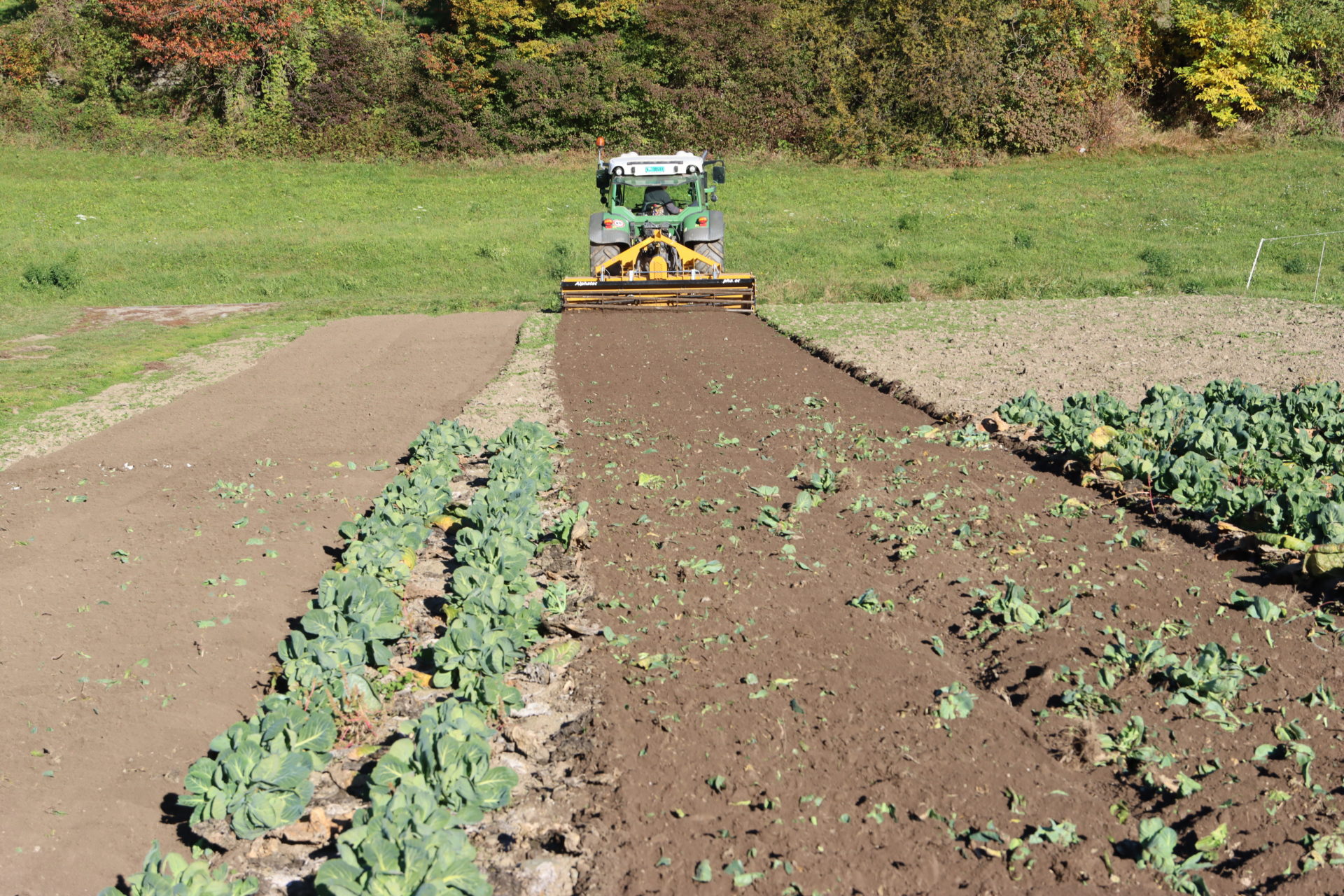 - Patentierter Zentralantrieb, Siebrost + Nivellierleiste → feine Erde oben, Steine & Kluten unten