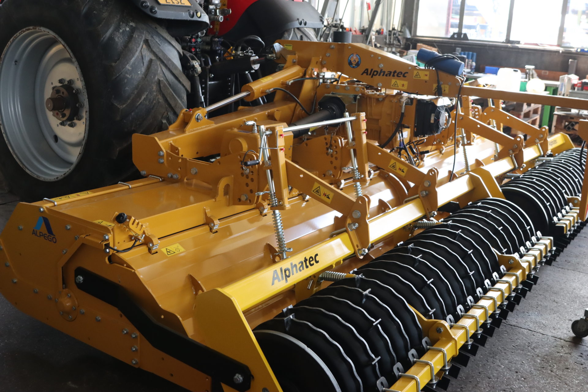 - Patentierte zentrale Alpego-Getriebe: perfekte Gewichtsverteilung, 4 Auflagepunkte, geringerer Leistungsbedarf, Arbeitsbreite = Außenbreite